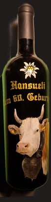 Es eignen sich vorallem Rotwein, Bier - oder generell dunkle Flaschen, damit das Sujet zur Geltung